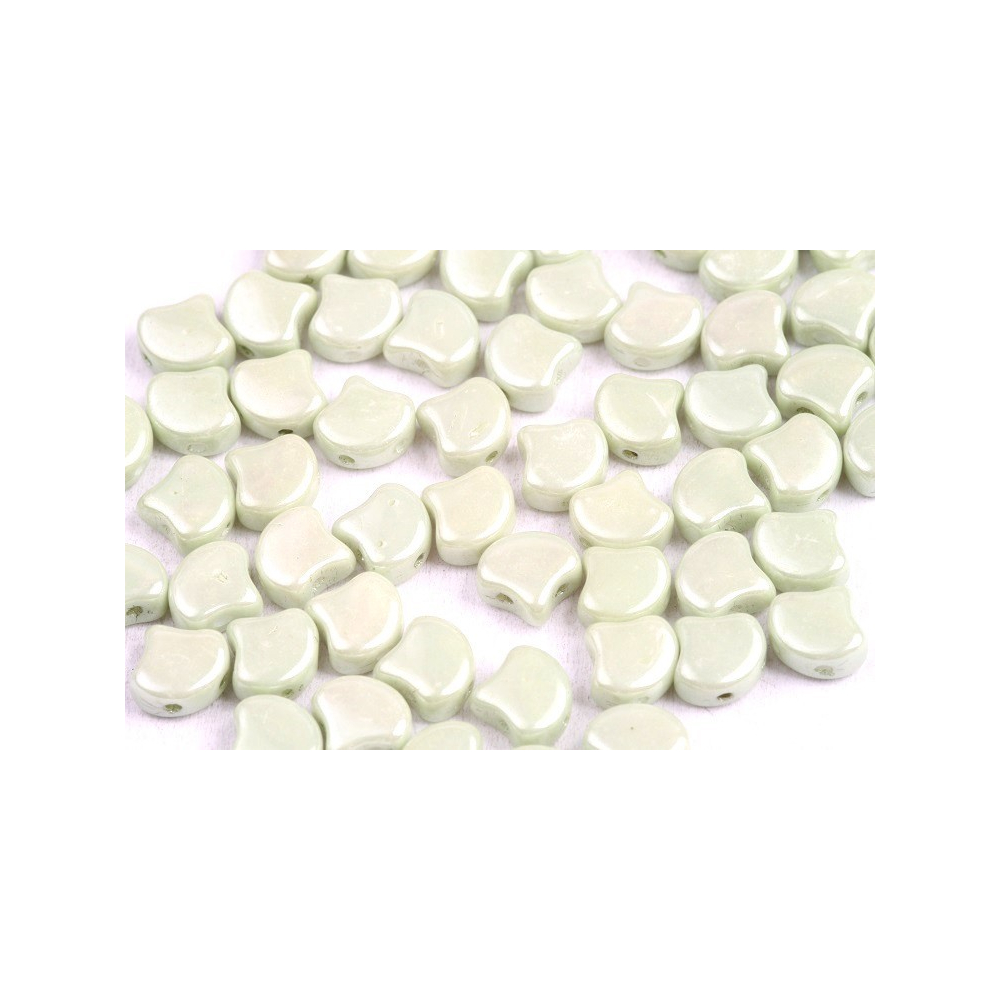 Skleněné mačkané korálky Ginko 7,5 x 7,5 mm CHALK LIGHT GREEN LUSTER 03000/14457