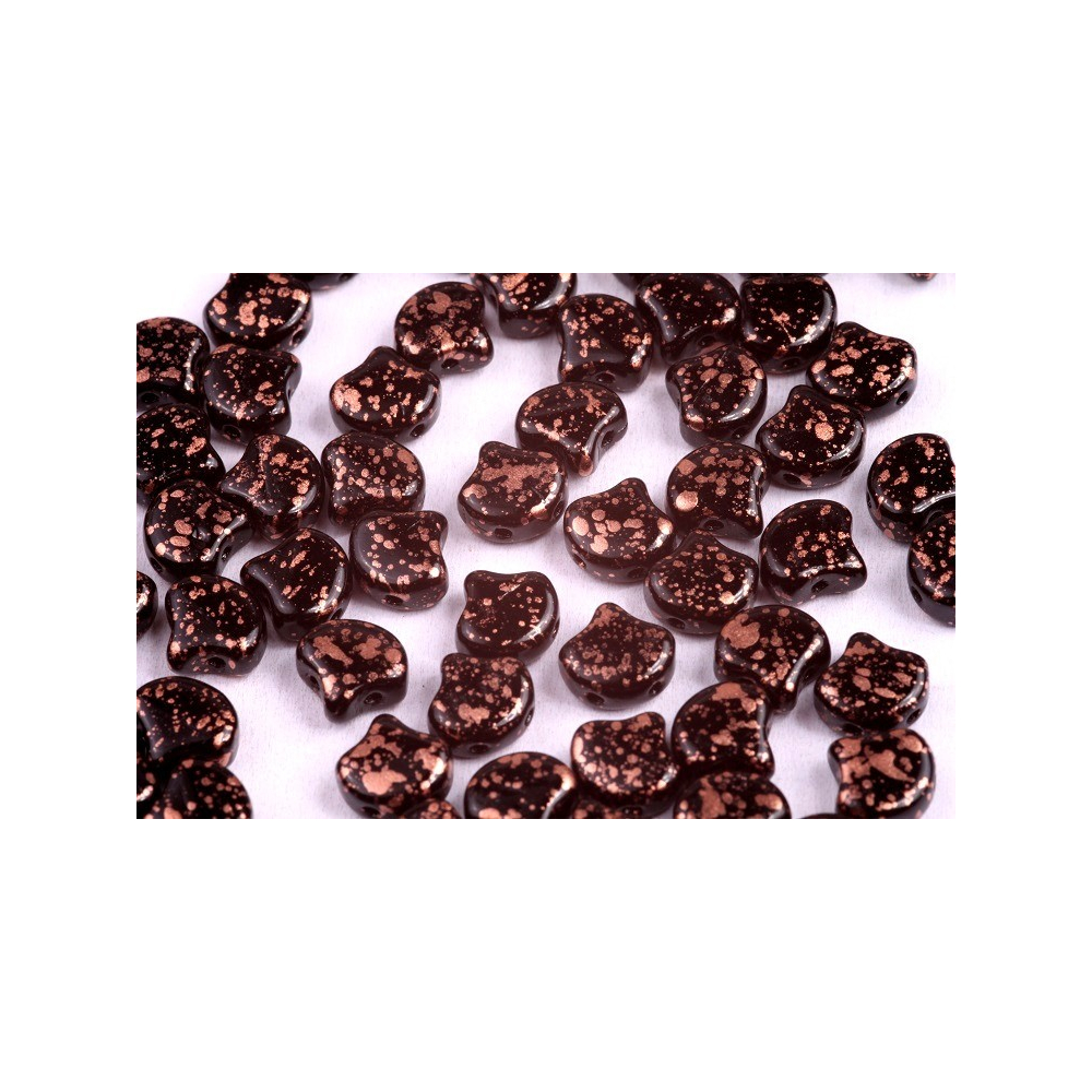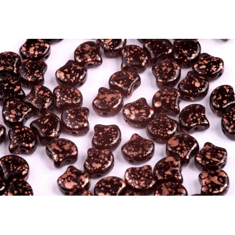 Skleněné mačkané korálky Ginko 7,5 x 7,5 mm COPPER SPLASH JET 23980/94412