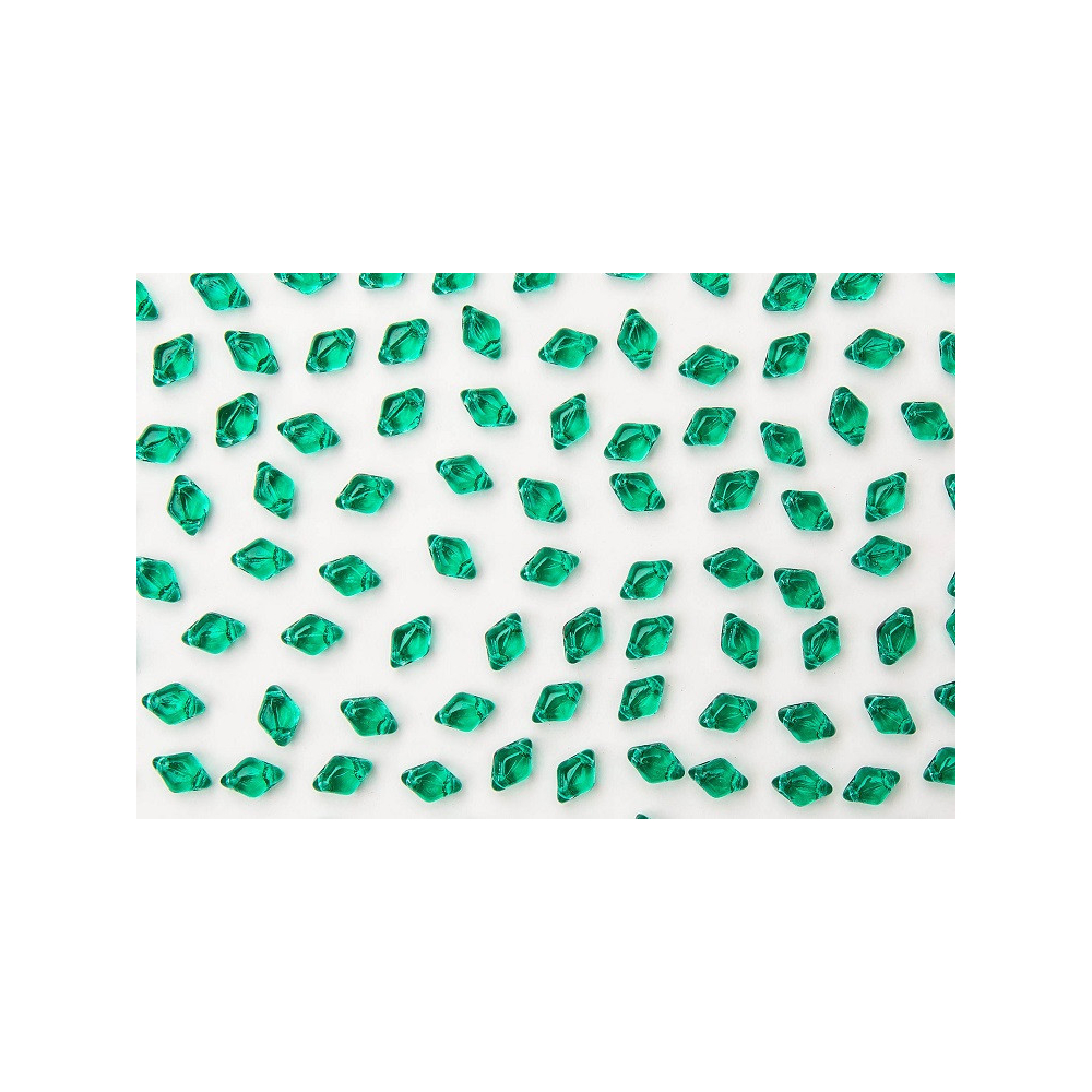 Smaragdově zelené Matubo™ MiniGemDuo o rozměru 6 x 4 mm představují precizně tvarovanou variantu oblíbených dvoudírkových korálků se zkosenými hranami, které definují moderní beadweaving. Díky vysoké kvalitě české skloviny mají tyto komponenty dokonale hladký povrch a konzistentní velikost průtahu 0,8 mm, což umožňuje opakovaný vícenásobný průchod nití korálkem i při velmi složitém šití. Tato technická preciznost je klíčová pro stabilitu prostorových šperků, kde je kladen důraz na pevnost a přesnost sesazení jednotlivých dílků bez nechtěných mezer.