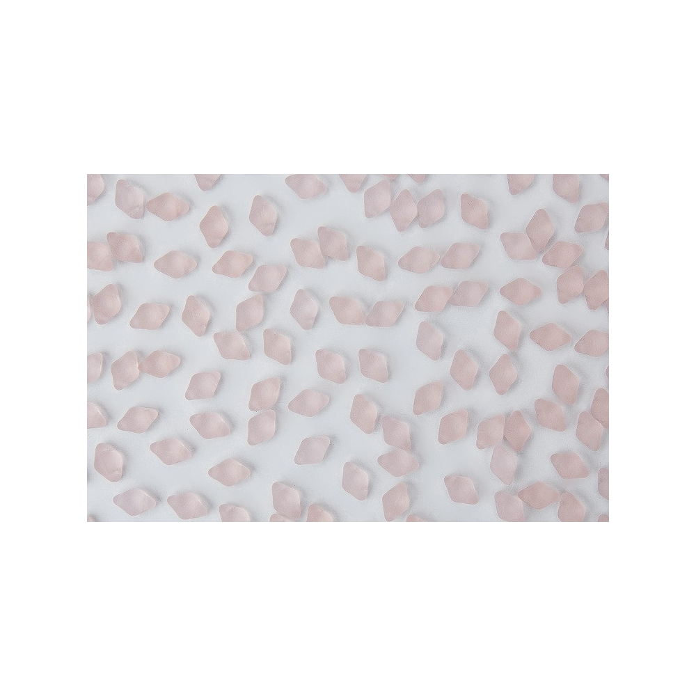 Saténově matný povrch v pudrově růžovém tónu dodává vašim projektům luxusní a sofistikovaný vzhled, který nepůsobí rušivě a skvěle vynikne v kombinaci s dalšími prvky. Velikost 6 x 4 mm je perfektní pro detailní korálkovou výšivku i prostorové šití, kde by standardní velikosti mohly působit příliš masivně. Pro zpevnění okrajů a jemné dozdobení se skvěle hodí drobný rokajl Preciosa ve velikostech 10/0 nebo 11/0.