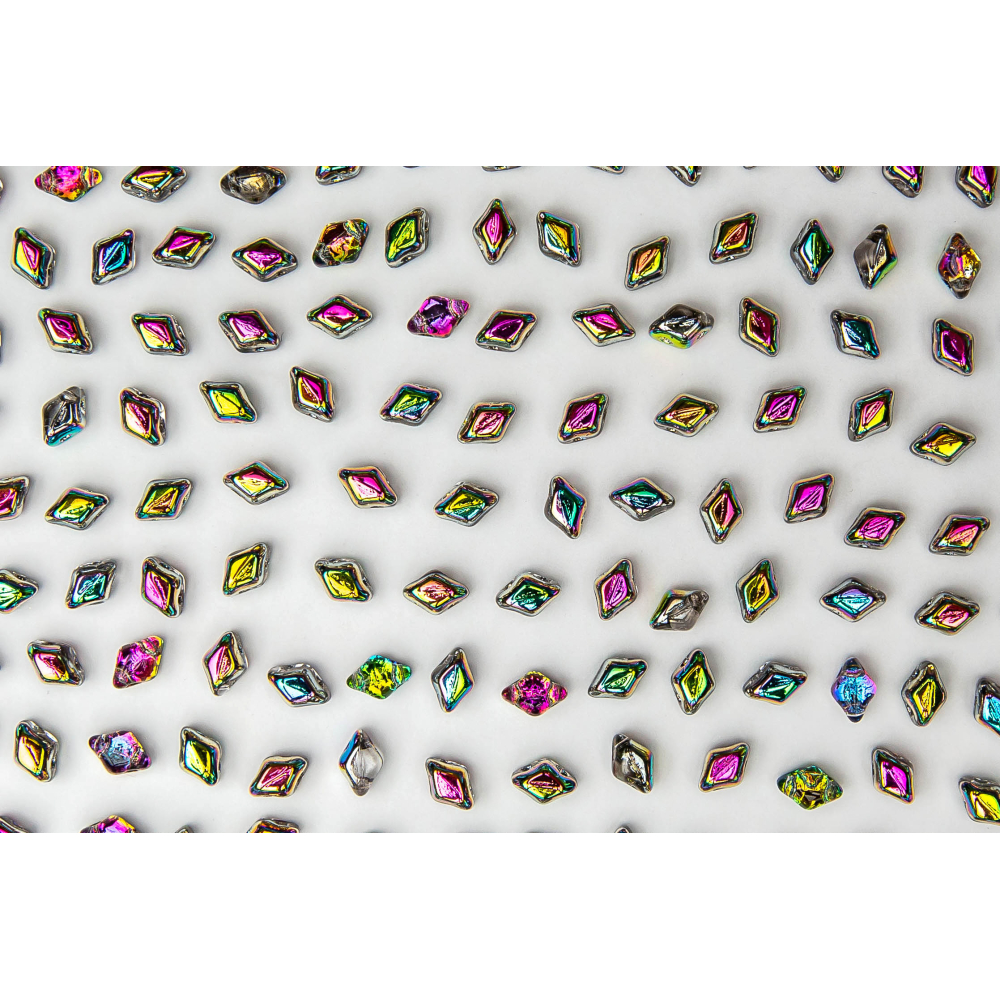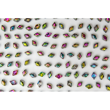 Hledáte ideálního partnera pro komplexní prostorové vzory? Tento model fantasticky doplňuje větší Matubo GemDuo, čímž vzniká zajímavý 3D efekt a vizuální hloubka šperku. Duhové odlesky povrchové úpravy vitrail dodají vašim náušnicím nebo náramkům dynamiku a barevnou proměnlivost, kterou oceníte zejména u autorské tvorby vyžadující vysoký lesk a originalitu.