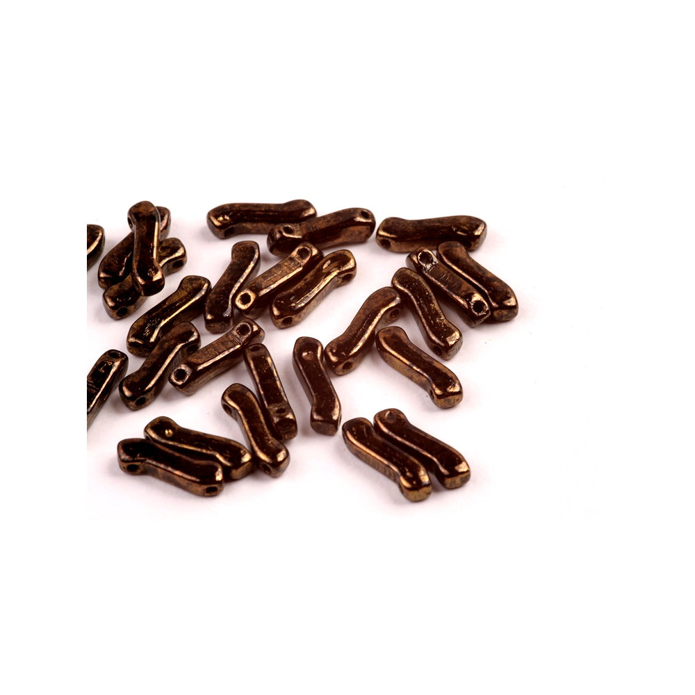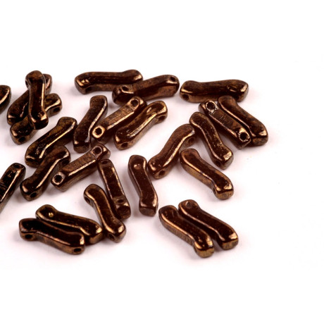 Bronzová metalická úprava na povrchu Matubo Z Bead o velikosti 10 mm dodává těmto lisovaným korálkům hloubku a luxusní starožitný vzhled. Dva precizně vylisované otvory s průtahem 0,8 mm zajišťují dokonalou souosost, což je kritické pro složité prostorové konstrukce a symetrické vzory v náročné korálkové výšivce. Sklovina pocházející od dodavatele Preciosa Ornela zaručuje vysokou mechanickou odolnost a barevnou stálost, díky čemuž si korálky Matubo zachovávají svůj lesk i při dlouhodobém nošení šperku.
