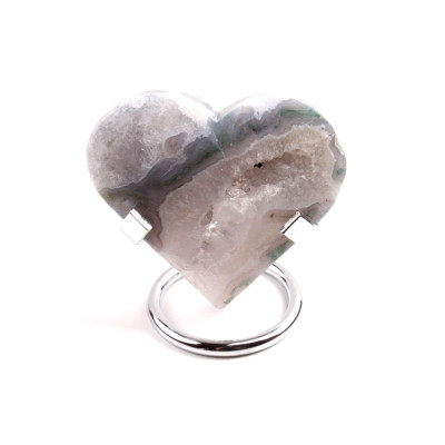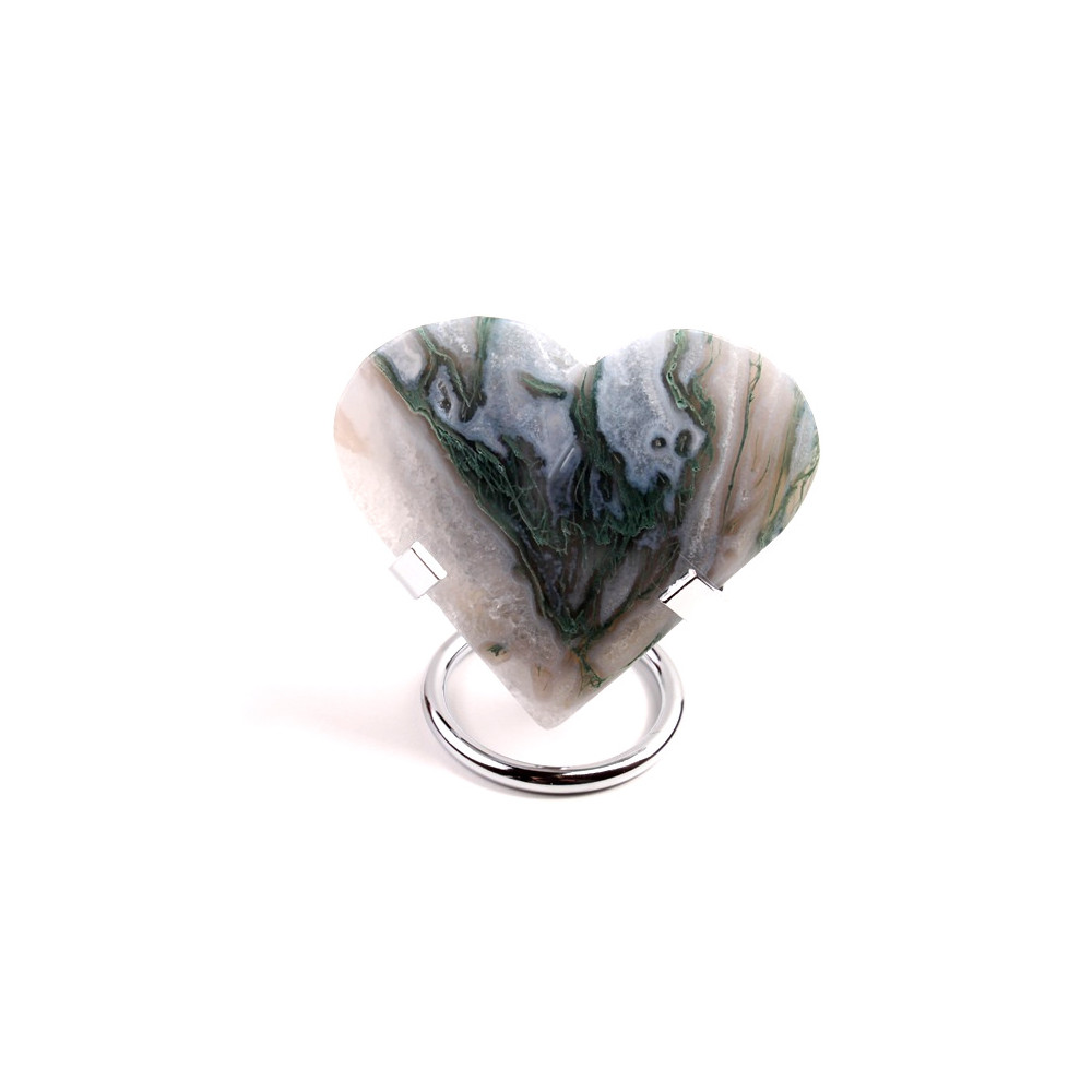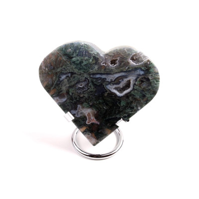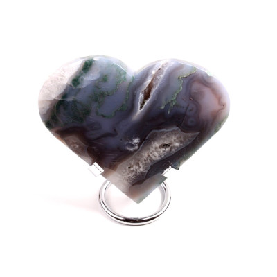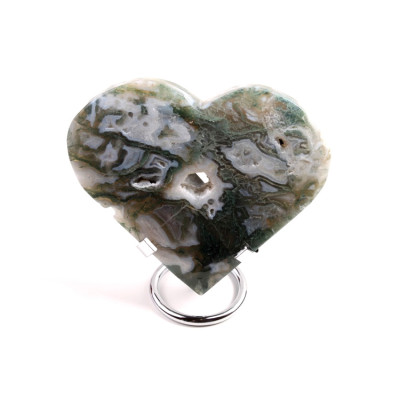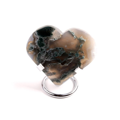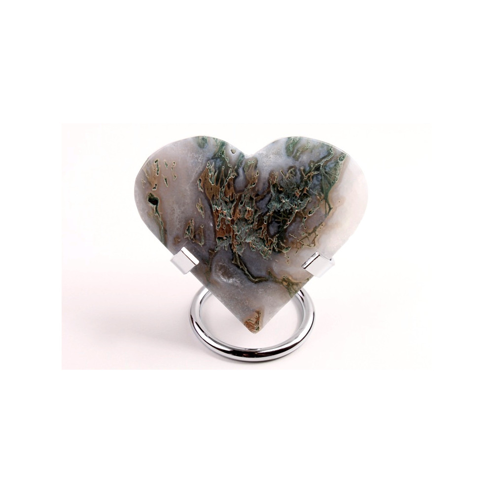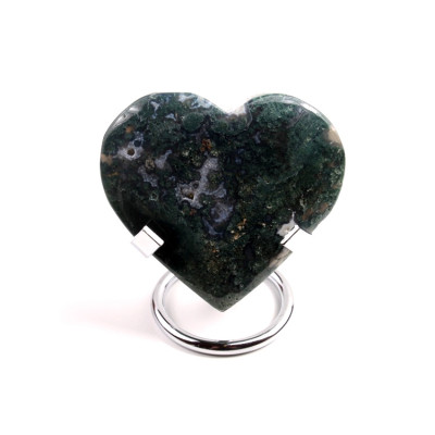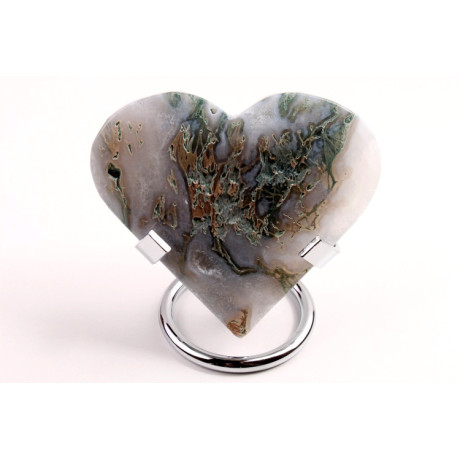 Mechový achát je často zpracováván do tvaru srdce, což symbolizuje lásku, harmonii a emocionální rovnováhu. Takovéto srdce může sloužit jako dekorace, talisman nebo součást šperků. Například přívěsek ve tvaru srdce s mechovým achátem a stříbrným úchytem je nejen elegantním šperkem, ale i nositelem pozitivní energie.