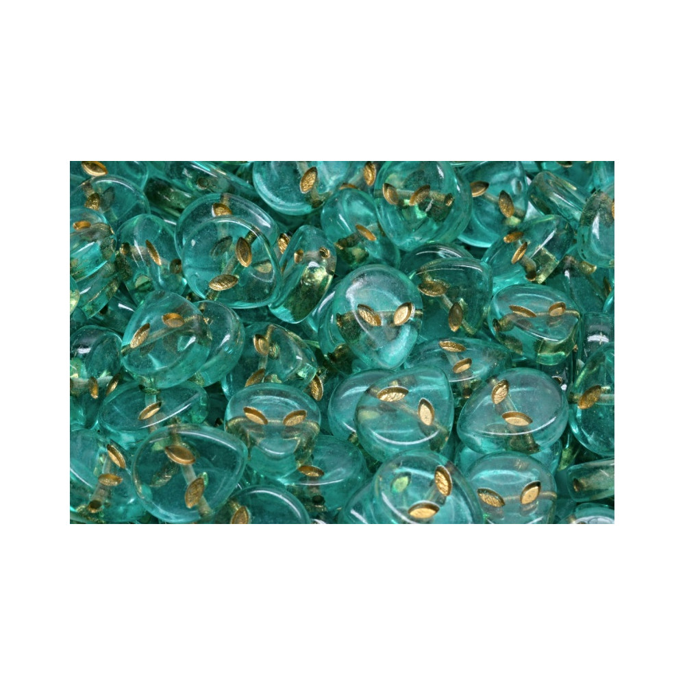 Tyrkysové skleněné korálky ve tvaru Alien Beads (Mimozemšťan) představují unikátní spojení moderního designu a tradičního českého sklářství. Rodinná firma Rutkovský je vyrábí technikou ručního lisování, která dovoluje vyniknout precizním detailům obličeje a charakteristicky tvarovaným očím. Průhledné sklo v mořském odstínu doplňuje zlatý dekor v prohlubních očí, což dodává výsledným šperkům hloubku a tajemný výraz.