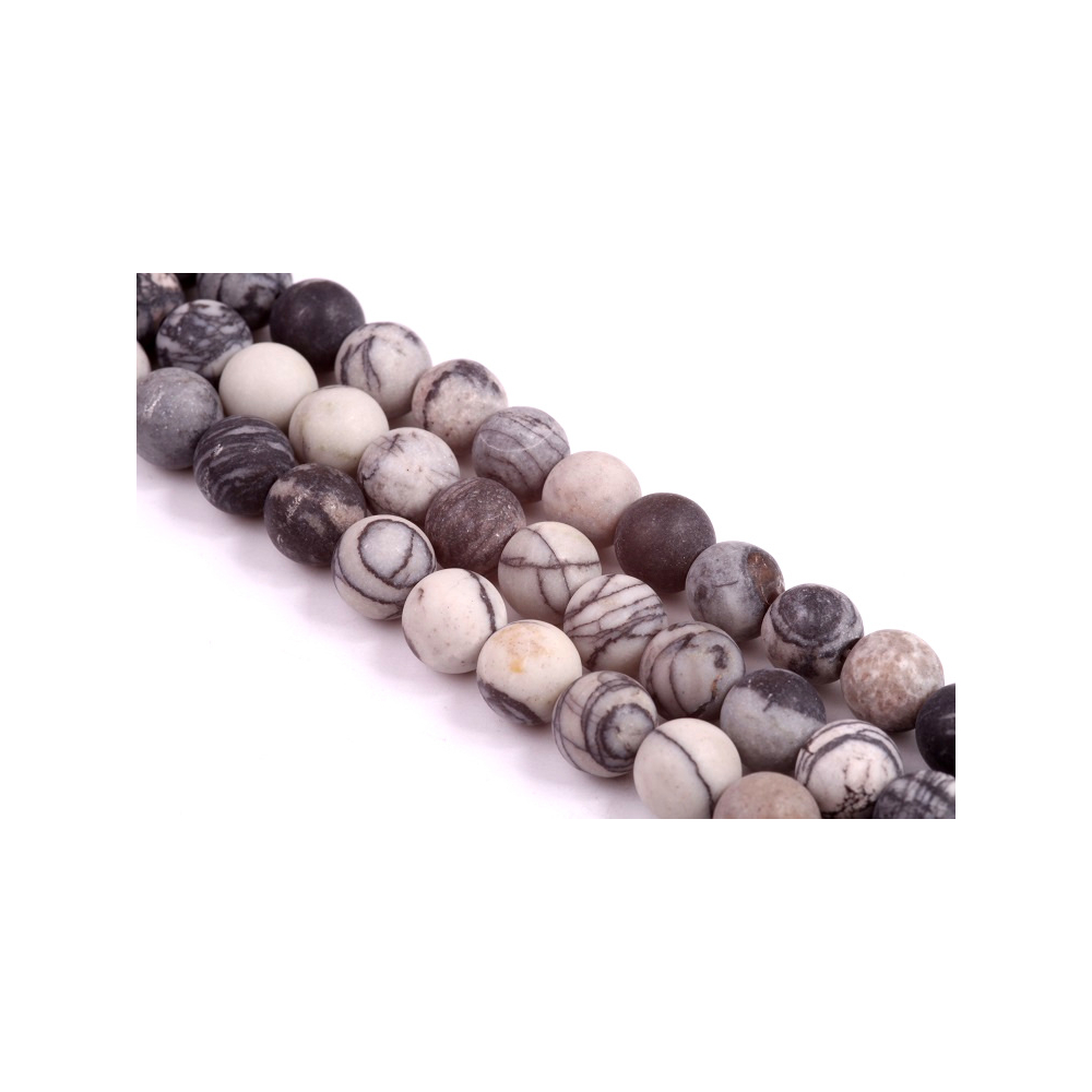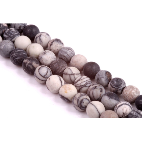 Matný minerální korálek (kulička) z černého hedvábného kamene nejen pro navlékání náramků.