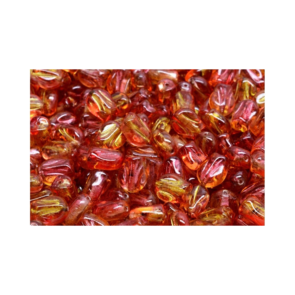 Kyyorálky Mini Tulip 9x7 mm, český výrobek od Rutkovského. Každý korálek je malým uměleckým dílem, ztvárňujícím krásu tulipánu. Tyto mačkané korálky jsou jako květiny zachycené ve skle, odrážející nádech jara a krásu přírody.