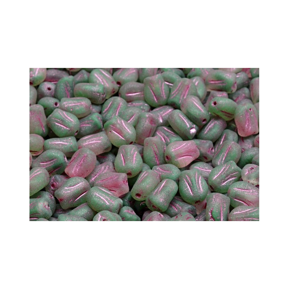 Kyyorálky Mini Tulip 9x7 mm, český výrobek od Rutkovského. Každý korálek je malým uměleckým dílem, ztvárňujícím krásu tulipánu. Tyto mačkané korálky jsou jako květiny zachycené ve skle, odrážející nádech jara a krásu přírody.