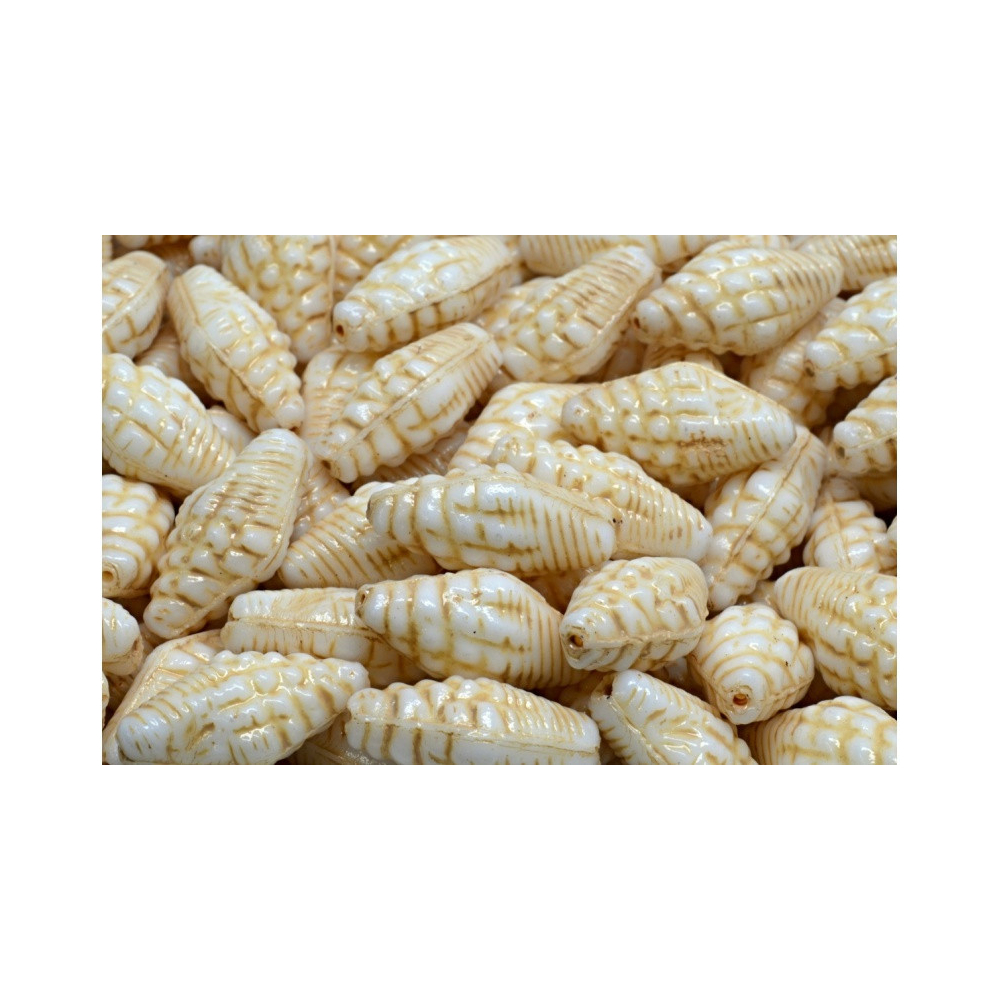 Miter Shell Beads OPAQUE IVORY SPOTTED GOLD LUSTER Velikost: 16 x 8 mm Velikost průtahu: 0,8 mm...