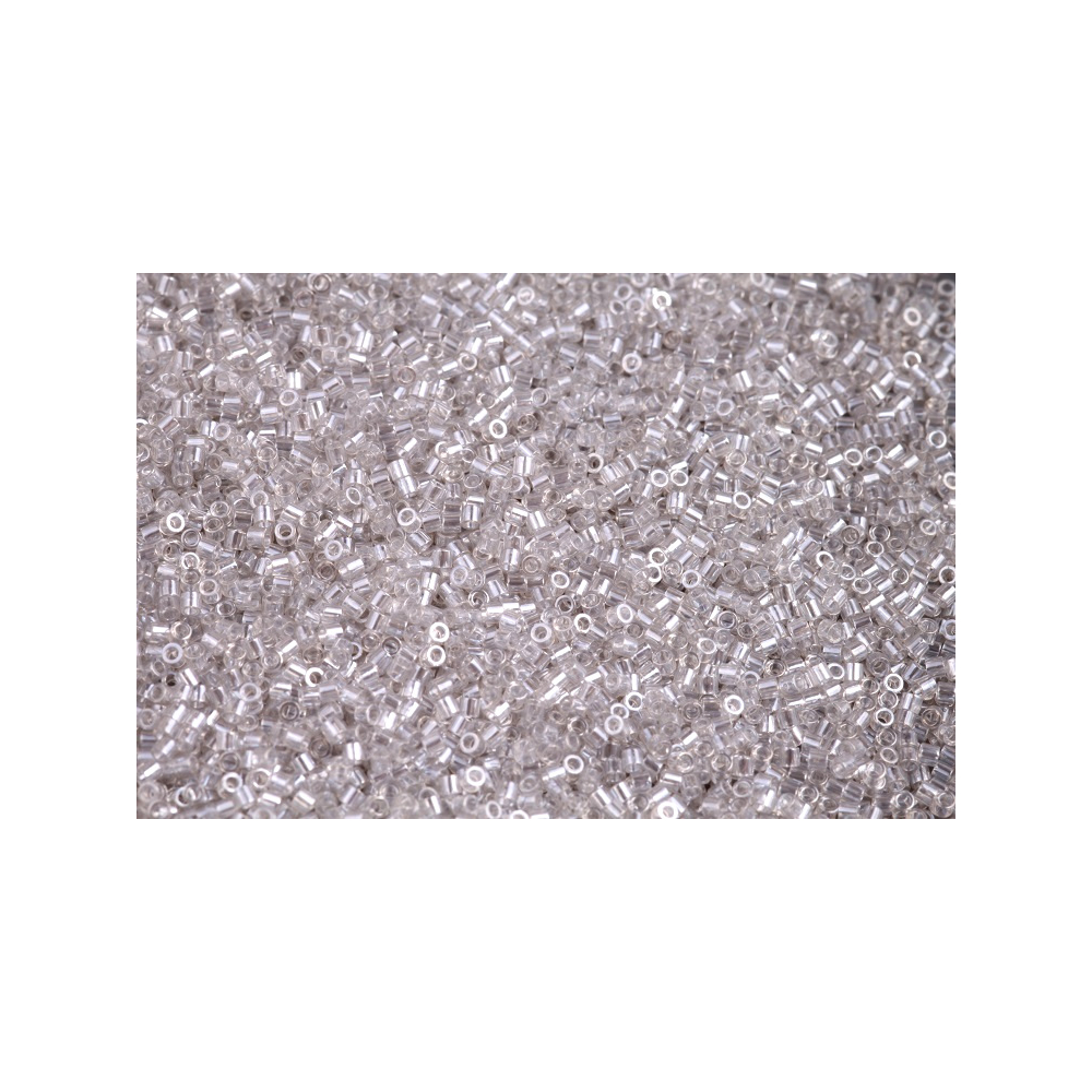 MIYUKI Delica 15/0 Velikost cca 15/0 - 1,3 mm Velikost průtahu: 0,65 mm Balení: 1 g Barva: TRANSP...
