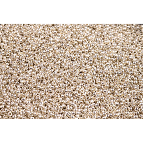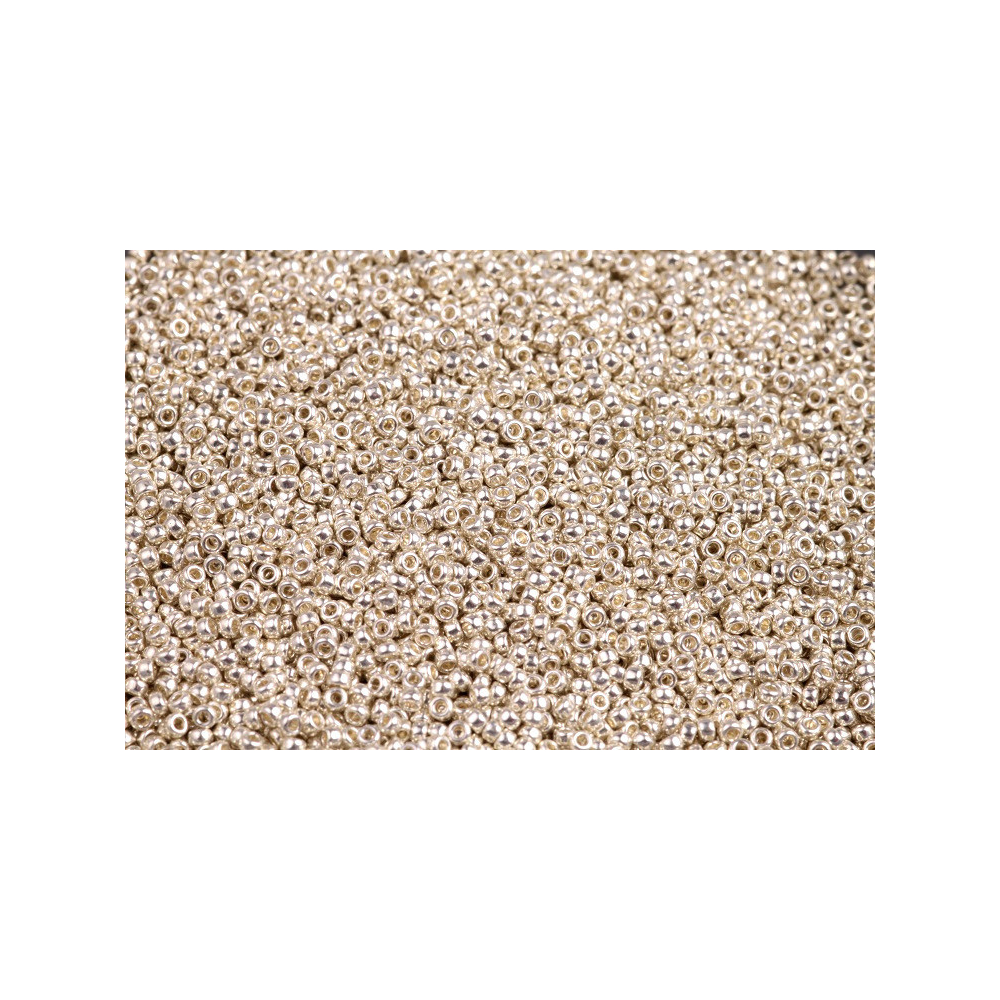 Skleněný základ s odolnou povrchovou úpravou zaručuje luxusní metalický vzhled, který imituje drahé kovy. Japonský výrobce Miyuki je celosvětově uznáván pro svou preciznost, díky které tyto korálky v šitých vzorech sedí mnohem těsněji než běžné materiály. Velikost průtahu 0,7 mm je u takto drobného korálku nadstandardní, což umožňuje vícenásobný průchod nití korálkem při složitých vzorech.
