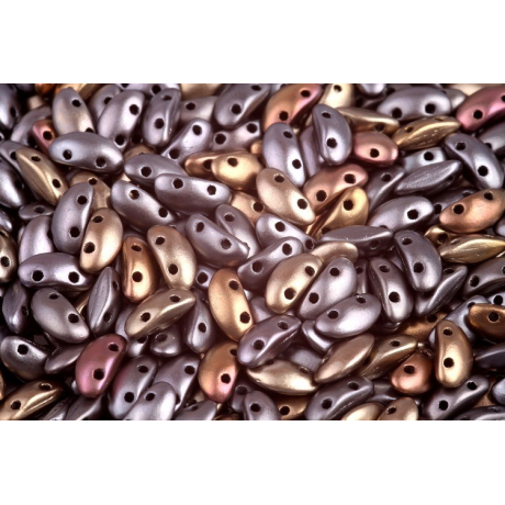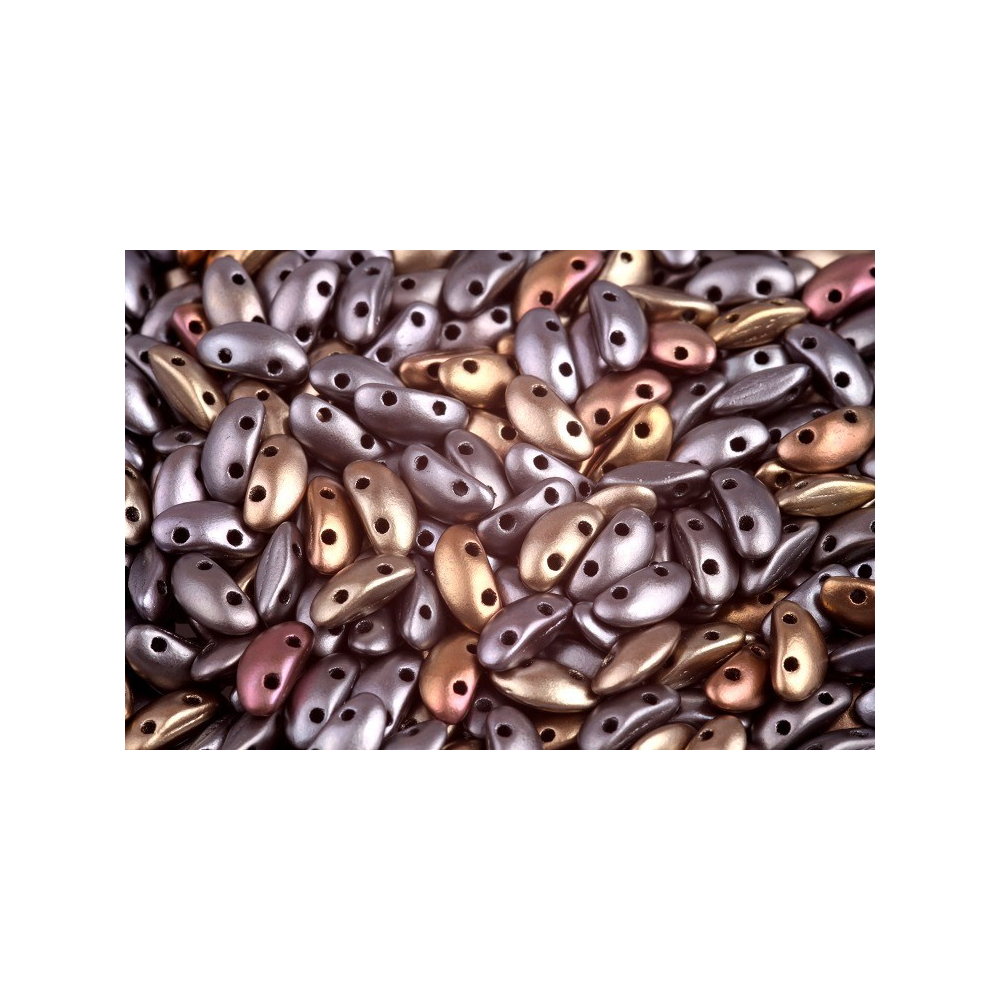 Mobyduo dvoudírkové korálky jsou speciálně navrženy pro šperkaře hledající flexibilitu a originalitu ve svých výtvorech. Tento inovativní tvar korálků, měřící 3x8 mm, připomíná malý oblong s mírně zakulacenými okraji a dvěma paralelně umístěnými otvory, které probíhají vzdáleně od sebe podél delší osy korálku. Tato unikátní struktura umožňuje nejen snadné navlečení, ale i tvorbu vícevrstvých nebo složitě vzorovaných designů, díky čemuž jsou ideální pro pokročilé beadweaving techniky.