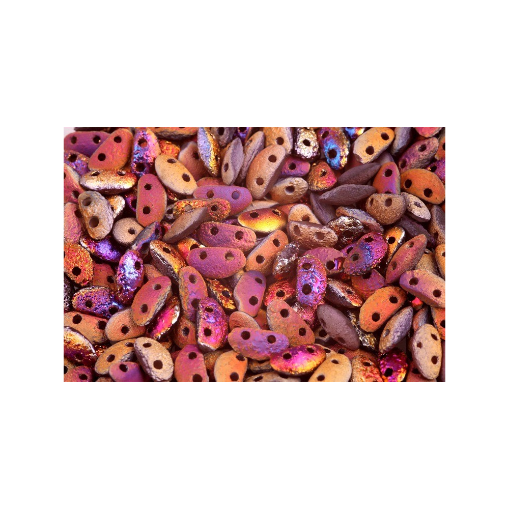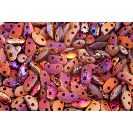 Mobyduo dvoudírkové korálky jsou speciálně navrženy pro šperkaře hledající flexibilitu a originalitu ve svých výtvorech. Tento inovativní tvar korálků, měřící 3x8 mm, připomíná malý oblong s mírně zakulacenými okraji a dvěma paralelně umístěnými otvory, které probíhají vzdáleně od sebe podél delší osy korálku. Tato unikátní struktura umožňuje nejen snadné navlečení, ale i tvorbu vícevrstvých nebo složitě vzorovaných designů, díky čemuž jsou ideální pro pokročilé beadweaving techniky.