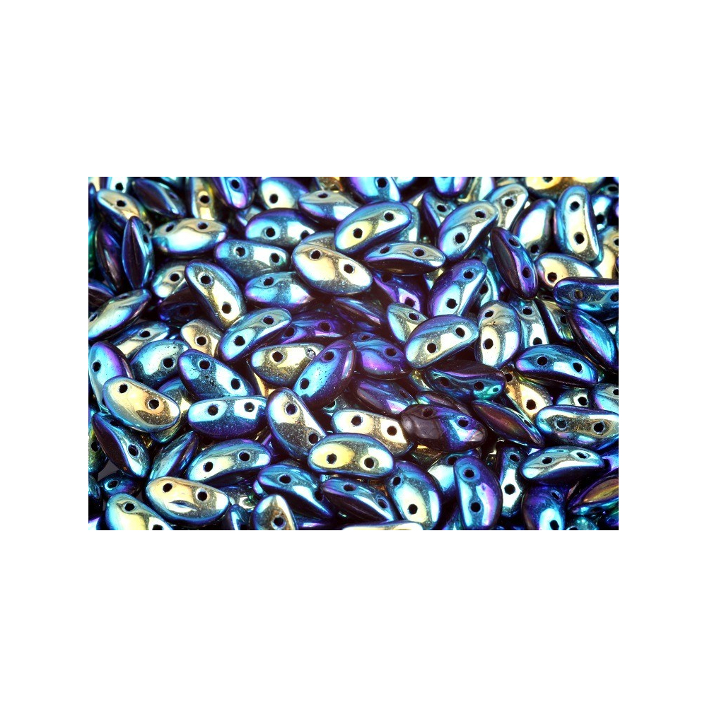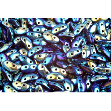 Mobyduo dvoudírkové korálky jsou speciálně navrženy pro šperkaře hledající flexibilitu a originalitu ve svých výtvorech. Tento inovativní tvar korálků, měřící 3x8 mm, připomíná malý oblong s mírně zakulacenými okraji a dvěma paralelně umístěnými otvory, které probíhají vzdáleně od sebe podél delší osy korálku. Tato unikátní struktura umožňuje nejen snadné navlečení, ale i tvorbu vícevrstvých nebo složitě vzorovaných designů, díky čemuž jsou ideální pro pokročilé beadweaving techniky.