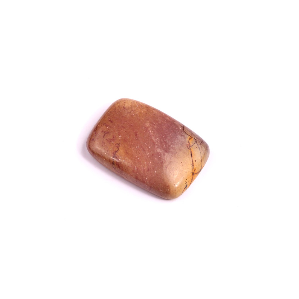 Kabošon z přírodního kamene Mookaite (Mokait) je výjimečným klenotem mezi minerály, známý svými teplými tóny a unikátní kresbou. Mokait se vyznačuje nádhernými odstíny žluté, červené, hnědé a fialové, které tvoří nepravidelné přechody a skvrny, dodávající každému kabošonu jeho neopakovatelný vzhled. Tento minerál pochází z Austrálie, kde je hojně ceněn nejen pro svou estetickou hodnotu, ale i pro své údajné harmonizující vlastnosti.