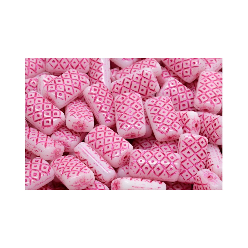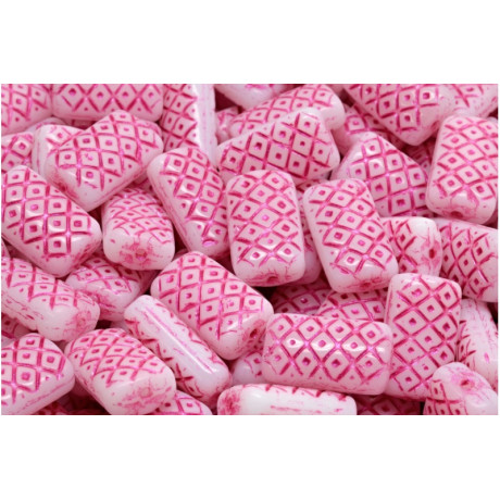 Tyto korálky, známé jako "Mřížkovaný polštářek", jsou nejen nádherné, ale i plné charakteru. S jejich nápadným rozměrem a jedinečným tvarovaným designem s vytlačeným mřížkovým vzorem vyniknou v každém šperku. Každý korálek je zdůrazněn kontrastními linkami, které zdůrazňují jeho třídimenzionální efekt, zatímco podklad v jemných barevných tónech dodává korálkům měkkost a ženskost.