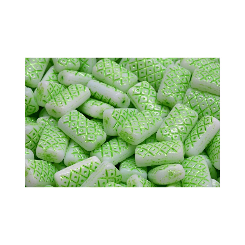 Tyto korálky, známé jako "Mřížkovaný polštářek", jsou nejen nádherné, ale i plné charakteru. S jejich nápadným rozměrem a jedinečným tvarovaným designem s vytlačeným mřížkovým vzorem vyniknou v každém šperku. Každý korálek je zdůrazněn kontrastními linkami, které zdůrazňují jeho třídimenzionální efekt, zatímco podklad v jemných barevných tónech dodává korálkům měkkost a ženskost.