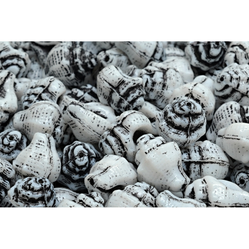 Murex Shell Beads WHITE ALABASTER NEBULA Velikost: 15 x 12 mm Velikost průtahu: 0,8 mm Balení: 6...