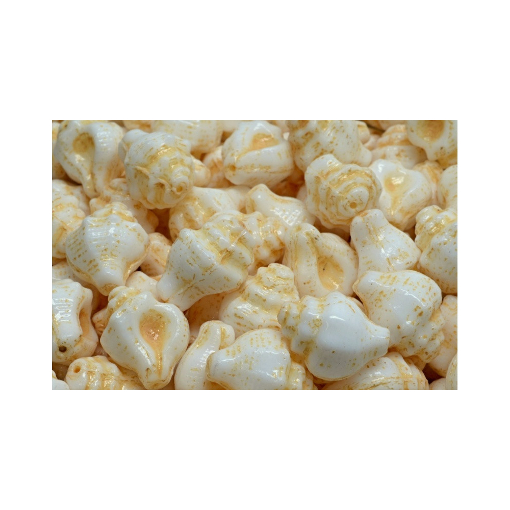 Murex Shell Beads WHITE ALABASTER/GOLD Velikost: 15 x 12 mm Velikost průtahu: 0,8 mm Balení: 6...