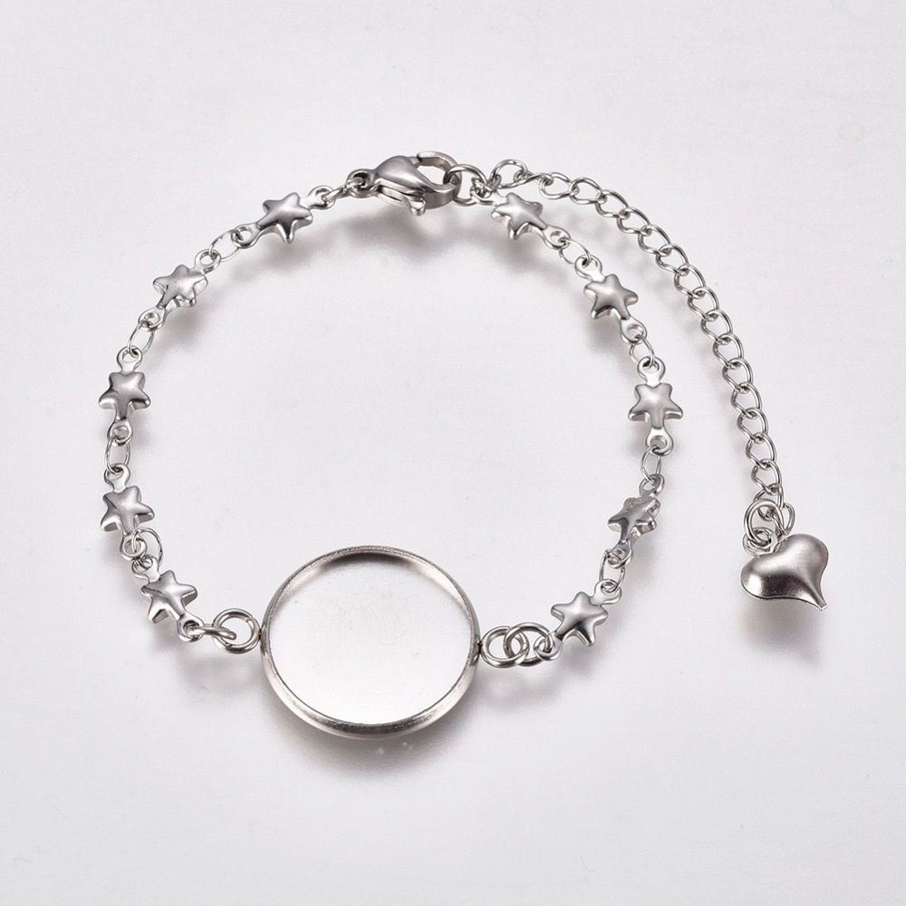 Náramek ocel Délka náramku 14cm + 5cm prodlužovací řetízek Velikost lůžka 16mm Cena za 1ks