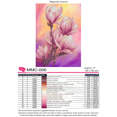 Plátno pro vyšívání korálky Velikost cca 25 x 35 cm Počet barev: 17 Vzor: Květiny a stromy...