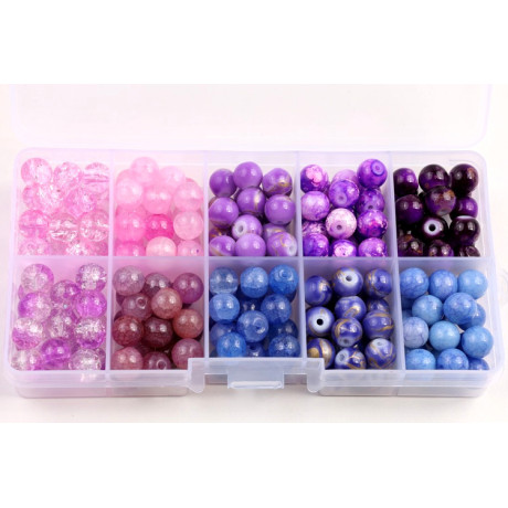 Organizér skleněné korálky kuličky Velikost korálků 8mm 10 druhů kuliček po cca 20ks od druhu...