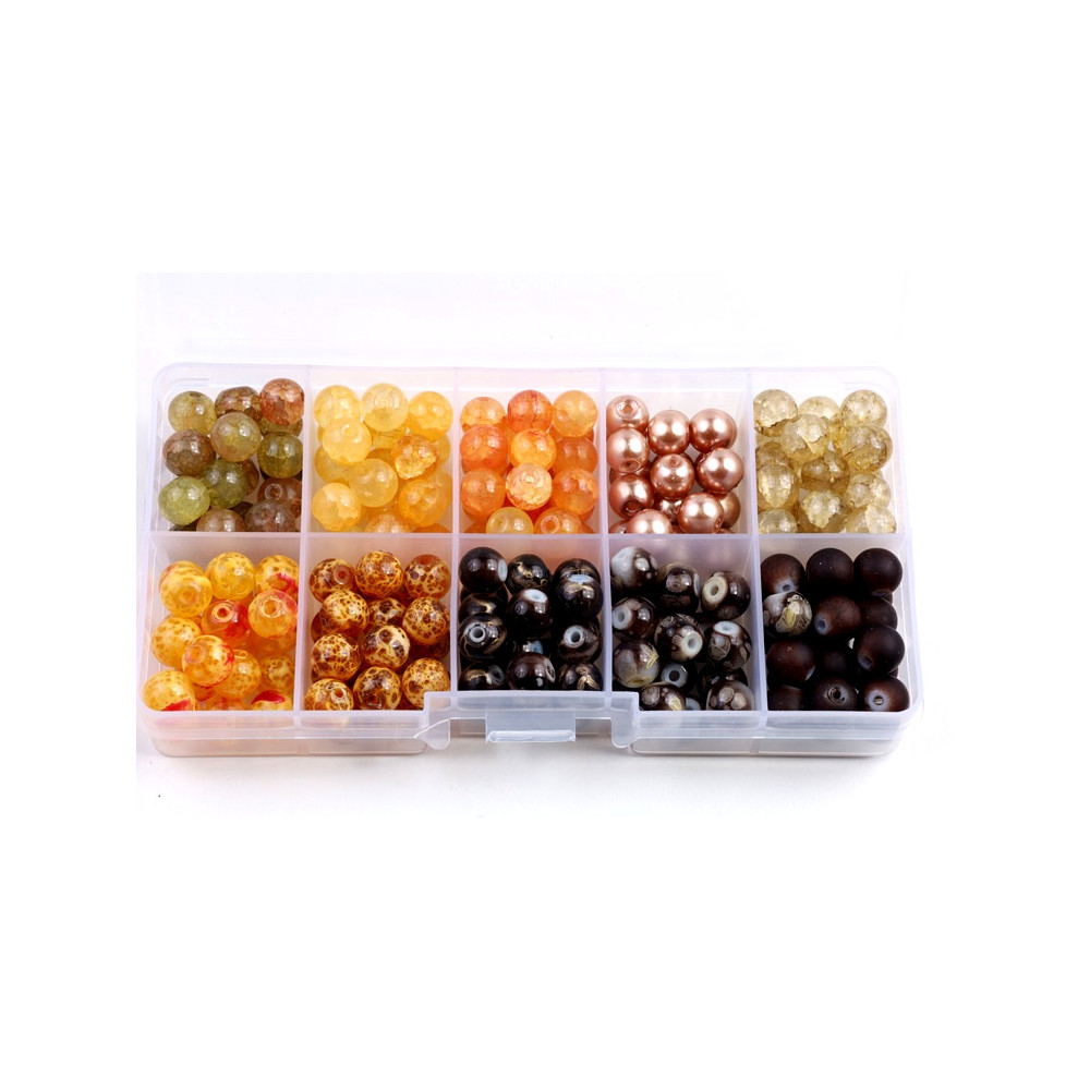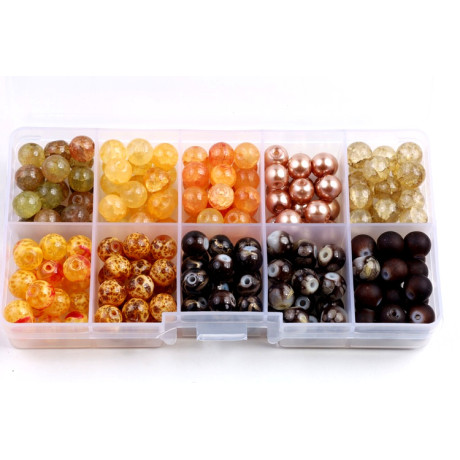 Organizér skleněné korálky kuličky Velikost korálků 8mm 10 druhů kuliček po cca 20ks od druhu...
