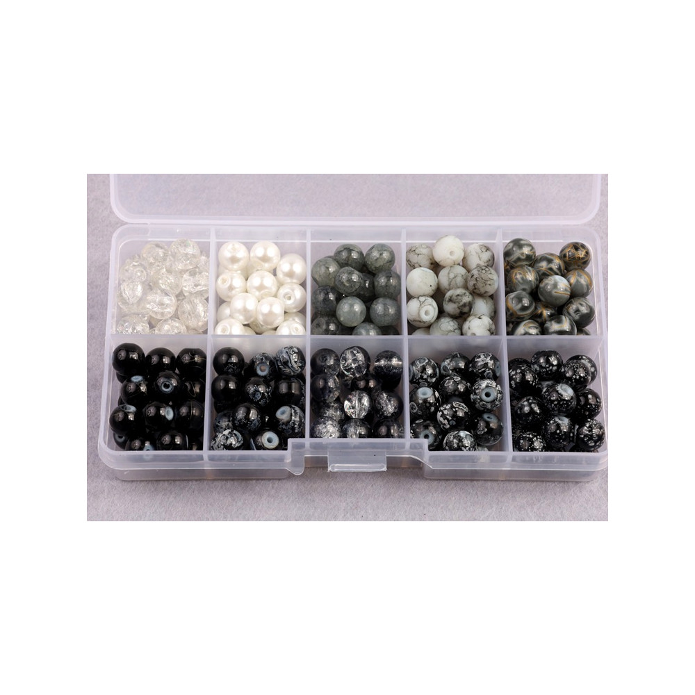 Organizér skleněné korálky kuličky Velikost korálků 8mm 10 druhů kuliček po cca 20ks od druhu...