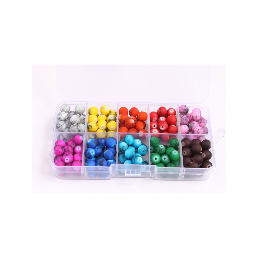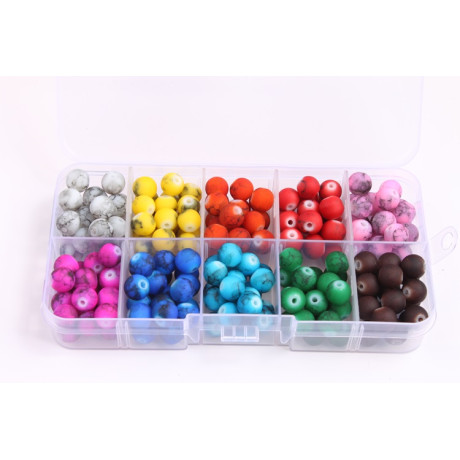 Organizér skleněné korálky kuličky Velikost korálků 8mm 10 druhů kuliček po cca 20ks od druhu...