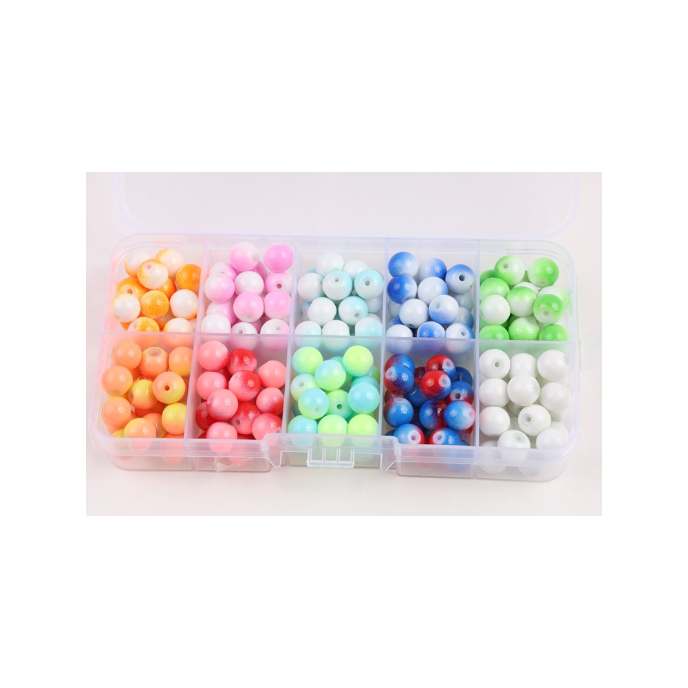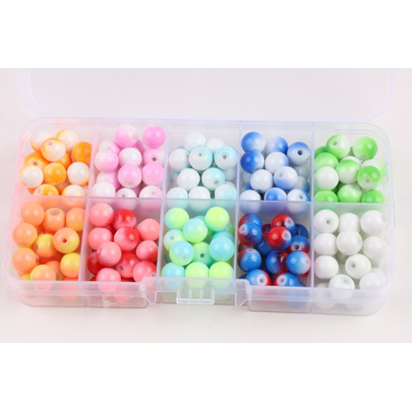 Organizér skleněné korálky kuličky Velikost korálků 8mm 10 druhů kuliček po cca 20ks od druhu...