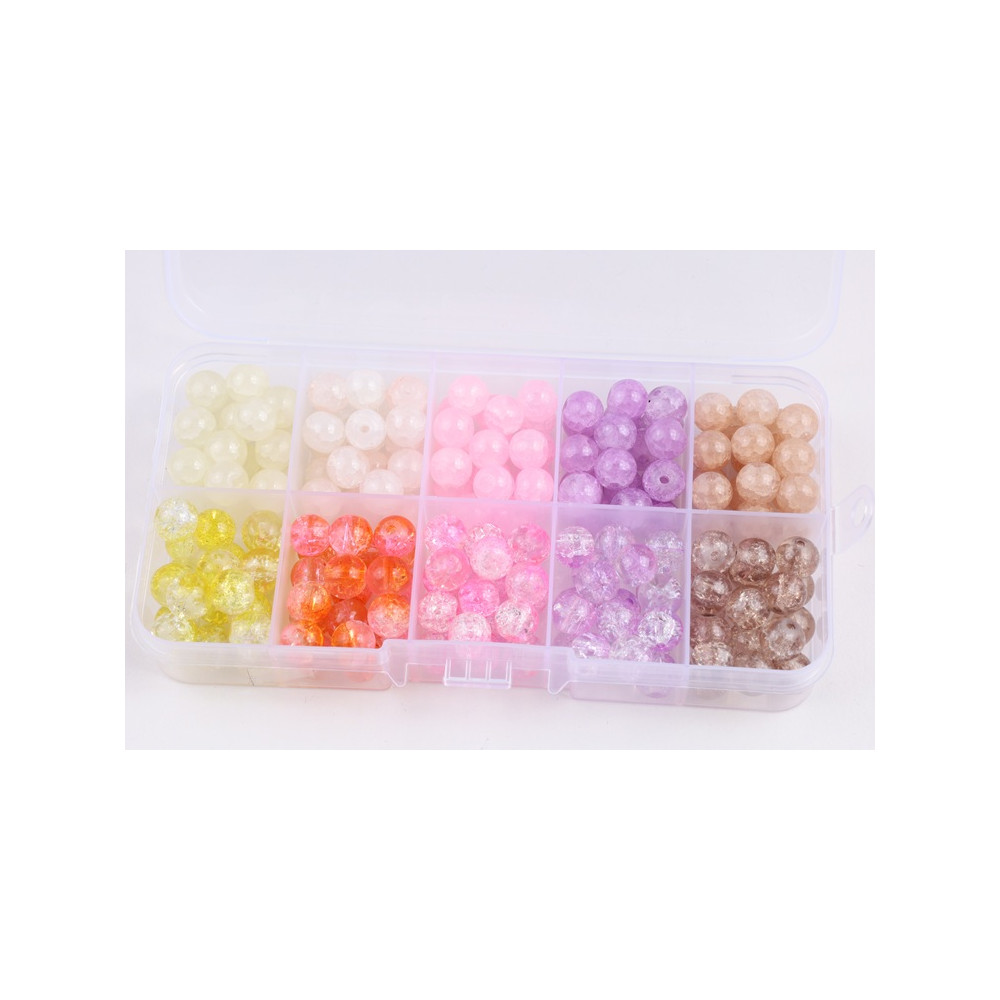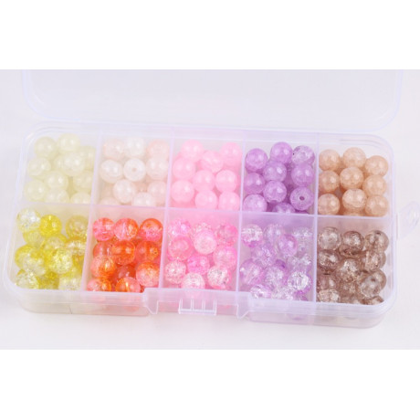 Organizér skleněné korálky kuličky Velikost korálků 8mm 10 druhů kuliček po cca 20ks od druhu...