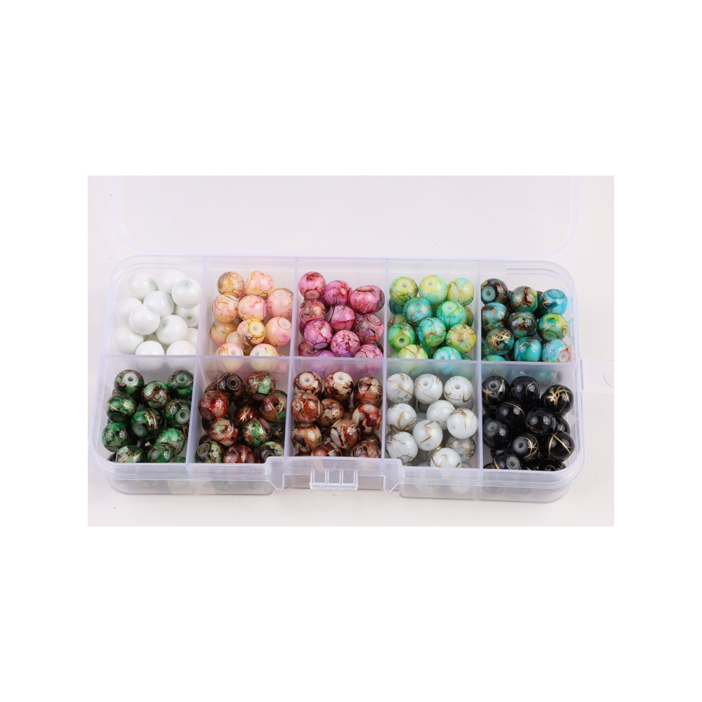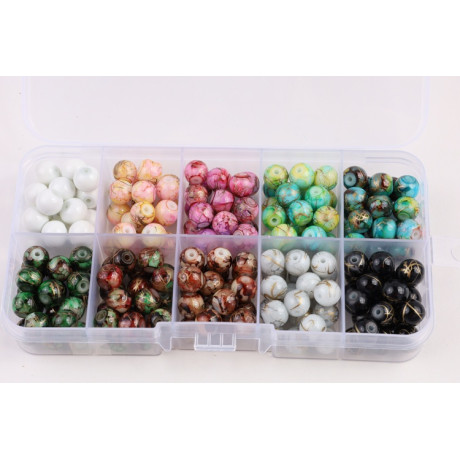 Organizér skleněné korálky kuličky Velikost korálků 8mm 10 druhů kuliček po cca 20ks od druhu...