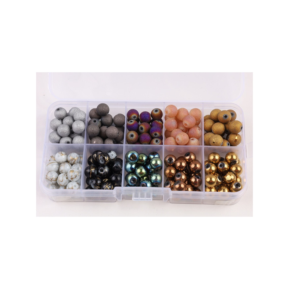 Organizér skleněné korálky kuličky Velikost korálků 8mm 10 druhů kuliček po cca 20ks od druhu...
