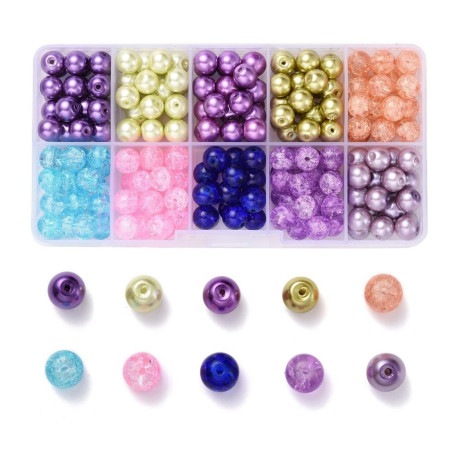 Organizér skleněné korálky kuličky Velikost korálků 8mm 10 druhů kuliček po cca 20ks od druhu...
