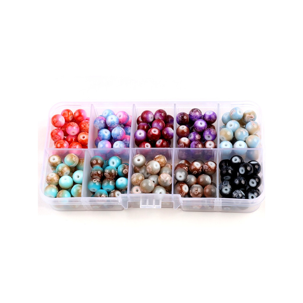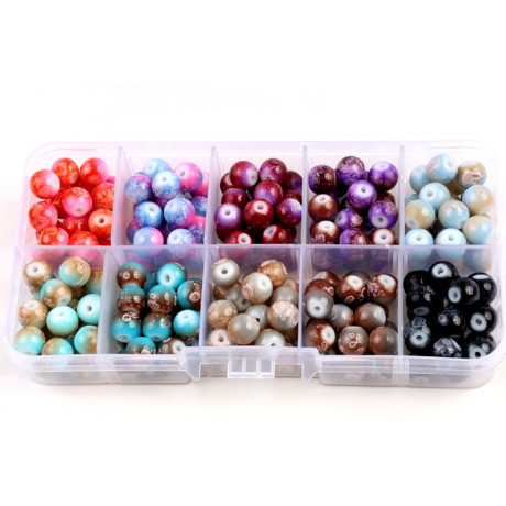 Organizér skleněné korálky kuličky Velikost korálků 8mm 10 druhů kuliček po cca 20ks od druhu...