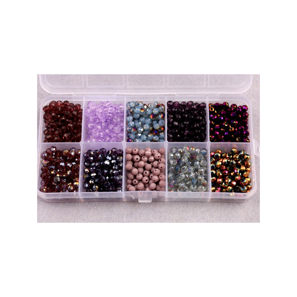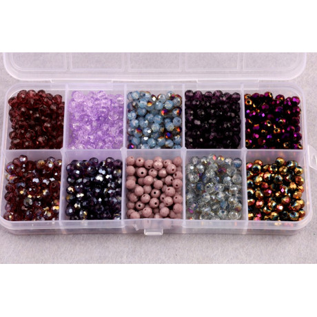 Organizér skleněné broušené kuličky 4 mm Velikost korálků 4mm 10 druhů kuliček po cca 80ks od...