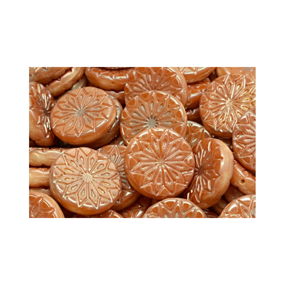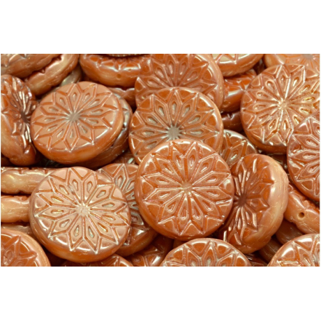 Fossil Shell Beads ORANGE OPAQUE/GOLD Velikost: 18 x 18 mm Velikost průtahu: 0,8 mm Balení: 2 ks...