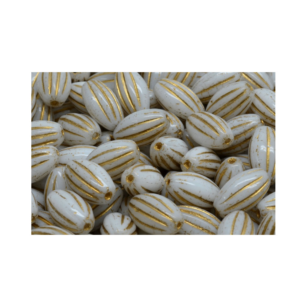 Melon Beads 4 x 4 - skleněné mačkané korálky ve tvaru melounů WHITE ALABASTER VEGA Velikost: 4 x...