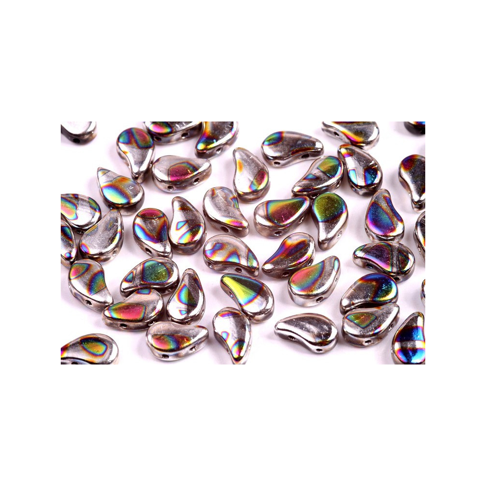 České dvoudírkové korálky Paisley Duo nabízí zcela unikátní tvar, který je inspirován tradičním Paisley motivem, připomínající kapku. Tento sofistikovaný design ve velikosti 5x8 mm je opatřen dvěma dírkami, umístěnými z boku každého korálku, umožňuje vytváření zajímavých překrývajících se efektů a plynulých přechodů ve vašich designech.