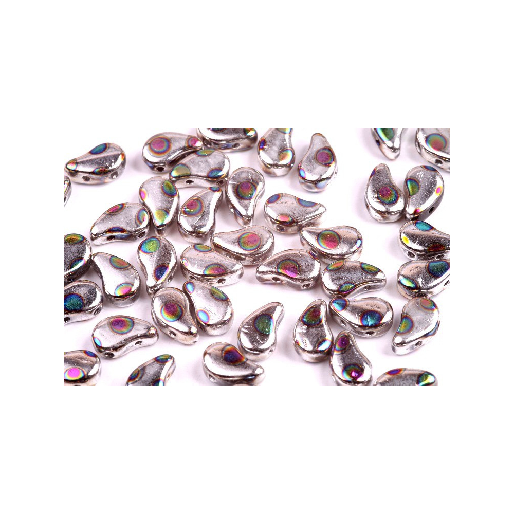 České dvoudírkové korálky Paisley Duo nabízí zcela unikátní tvar, který je inspirován tradičním Paisley motivem, připomínající kapku. Tento sofistikovaný design ve velikosti 5x8 mm je opatřen dvěma dírkami, umístěnými z boku každého korálku, umožňuje vytváření zajímavých překrývajících se efektů a plynulých přechodů ve vašich designech.