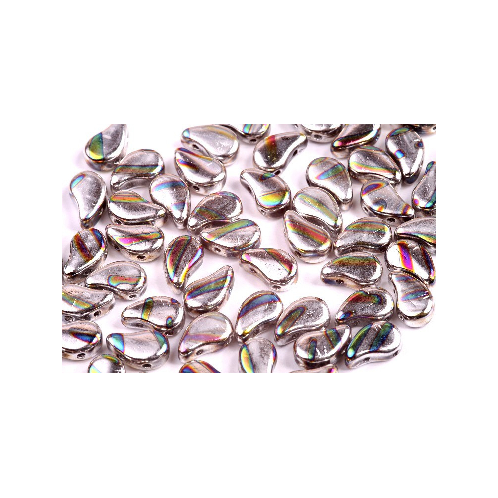 České dvoudírkové korálky Paisley Duo nabízí zcela unikátní tvar, který je inspirován tradičním Paisley motivem, připomínající kapku. Tento sofistikovaný design ve velikosti 5x8 mm je opatřen dvěma dírkami, umístěnými z boku každého korálku, umožňuje vytváření zajímavých překrývajících se efektů a plynulých přechodů ve vašich designech.