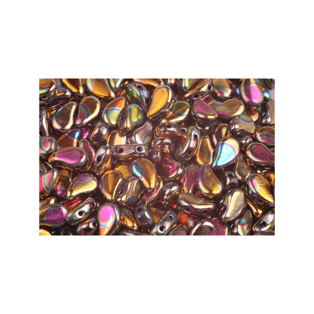 České dvoudírkové korálky Paisley Duo nabízí zcela unikátní tvar, který je inspirován tradičním Paisley motivem, připomínající kapku. Tento sofistikovaný design ve velikosti 5x8 mm je opatřen dvěma dírkami, umístěnými z boku každého korálku, umožňuje vytváření zajímavých překrývajících se efektů a plynulých přechodů ve vašich designech.