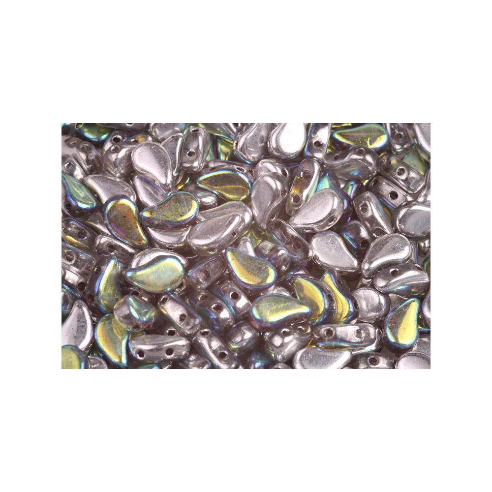 České dvoudírkové korálky Paisley Duo nabízí zcela unikátní tvar, který je inspirován tradičním Paisley motivem, připomínající kapku. Tento sofistikovaný design ve velikosti 5x8 mm je opatřen dvěma dírkami, umístěnými z boku každého korálku, umožňuje vytváření zajímavých překrývajících se efektů a plynulých přechodů ve vašich designech.
