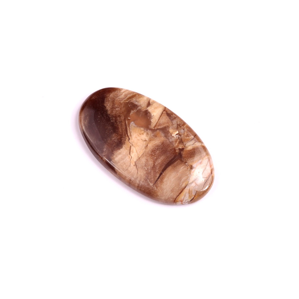 Palm Root Jasper, známý jako jaspis z palmového kořene, je fascinující a vzácný fosilizovaný minerál s hlubokou historií sahající miliony let do minulosti. Tento neobyčejný kámen vznikl, když kořeny pradávných palem prošly fosilizačním procesem, během kterého byly organické materiály nahrazeny minerálními složkami. Jeho nádherně detailní struktura připomíná dřevo, kde se prolínají odstíny hnědé, krémové, béžové a černé v jedinečných vzorech. Tyto zemité tóny a přírodní linie jsou často zdobeny jemnými žilkami nebo texturami, které činí každý kabošon jedinečným a neopakovatelným.
