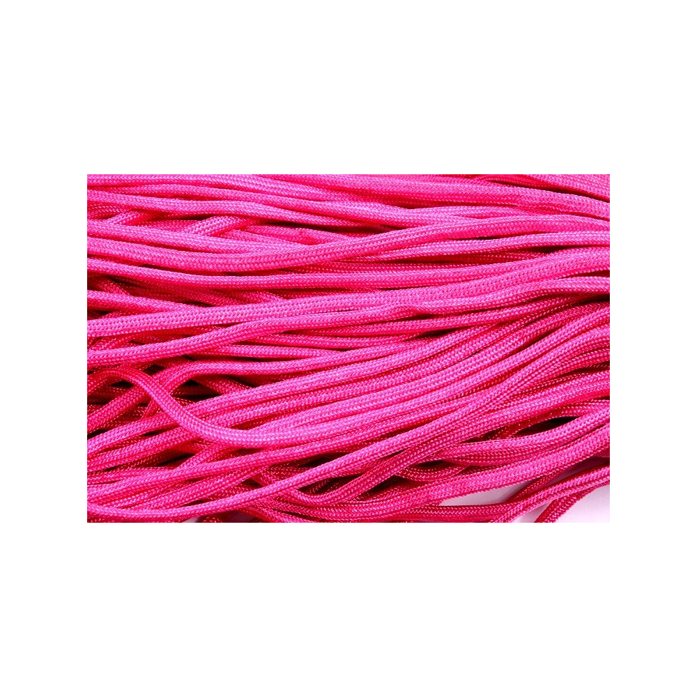 Paracord Type III 550 (PES)Velikost cca 4 mmStředová vlákna: 7 pramenyBalení: 1 mtBarva: Pink/bk...