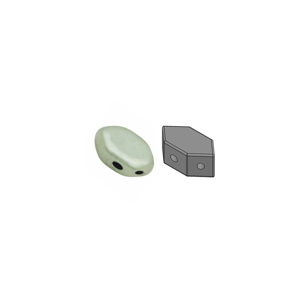 Rozměry 7 x 4 mm a dva paralelní průtahy o průměru 0,7 mm definují tyto skleněné mačkané korálky Paros® par Puca® v jemném odstínu Opaque Light Green Ceramic Look. Díky preciznímu zpracování z kvalitního českého skla zajišťují hladký průchod korálkovací jehly velikosti 10-12, což je klíčové pro složité prostorové konstrukce a šité šperky. Tento specifický tvar šestiúhelníku s asymetrickým profilem umožňuje vytvářet plynulé křivky i pevné geometrické vzory, které v moderní bižuterii působí velmi nadčasově.