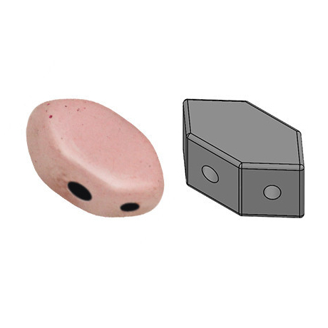 Paros® par Puca® č. 32 v barvě Opaque Light Rose Ceramic Look představují unikátní dvoudírkové korálky s rozměry 7 x 4 mm. Jejich specifický tvar s lomenými hranami umožňuje vytvářet složité geometrické vzory, které by s běžnými tvary nebyly možné.