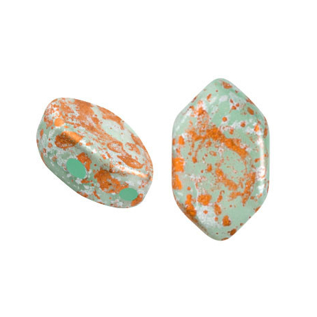 Skleněné mačkané korálky Paros® par Puca® 7 x 4 mm OPAQUE GREEN TURQUOISE PICASSO 63130/43400...