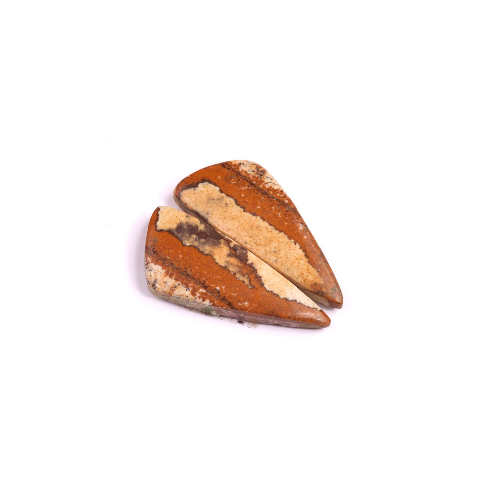 Párové kabošony z přírodního kamene Picture Jasper (Obrázkový jaspis) jsou dokonalým materiálem pro výrobu náušnic nebo symetrických šperků. Tento unikátní kámen je známý svými fascinujícími vzory, které připomínají přírodní krajinu nebo abstraktní obrazy. Každý pár je přesně vyřezán z jednoho kusu kamene, aby k sobě perfektně ladil, a zároveň vyjádřil krásu jaspisu ve tvaru elegantních kabošonů.
