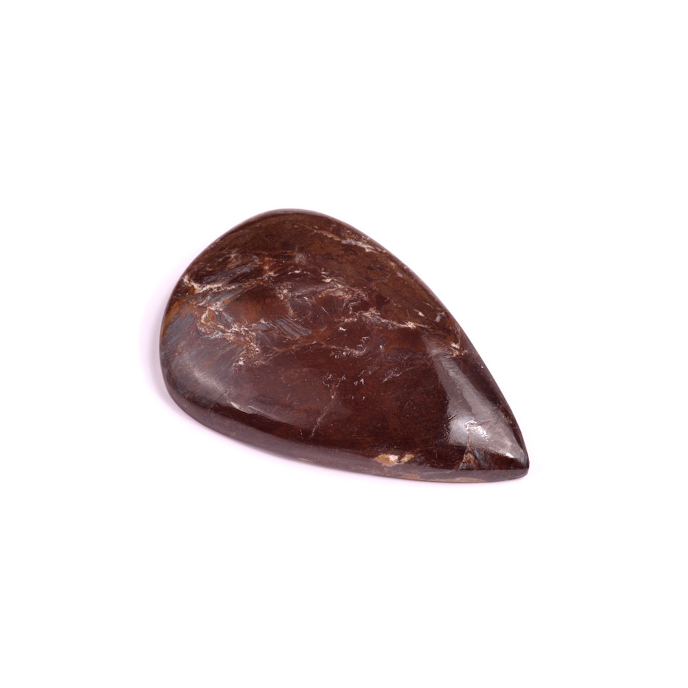 Pietersite je fascinující kámen s unikátními vířivými vzory, které přecházejí od tmavě hnědých a šedých tónů až po zlaté a modravé odlesky. Tento kabošon vyniká svou přirozenou krásou a jedinečnou texturou, která připomíná tančící bouři zachycenou uvnitř minerálu. Díky tomuto charakteristickému vzhledu je Pietersite oblíbeným kamenem nejen mezi šperkaři, ale také mezi sběrateli a milovníky minerálů.