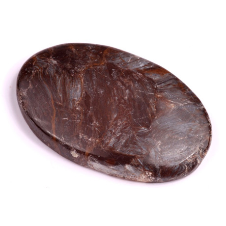 Pietersite je fascinující kámen s unikátními vířivými vzory, které přecházejí od tmavě hnědých a šedých tónů až po zlaté a modravé odlesky. Tento kabošon vyniká svou přirozenou krásou a jedinečnou texturou, která připomíná tančící bouři zachycenou uvnitř minerálu. Díky tomuto charakteristickému vzhledu je Pietersite oblíbeným kamenem nejen mezi šperkaři, ale také mezi sběrateli a milovníky minerálů.